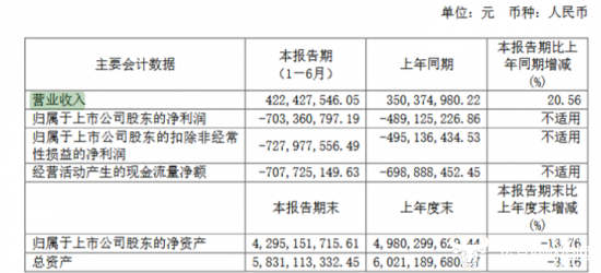 据荣昌生物发布的2023年半年度报告,公司实现营业收入约4.22亿元,同比增加20.56%;归属于上市公司股东的净利润约亏损7.03亿元,归属于上市公司股东的扣除非经常性损益的净利润约亏损7.28亿元,亏损进一步加剧。