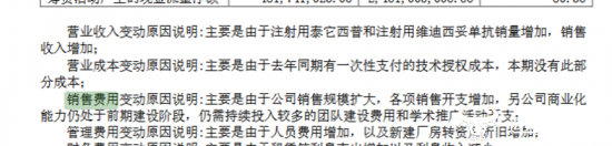 对于其销售费用的大幅提升,荣昌生物在半年报中表示,主要是由于公司销售规模扩大,各项销售开支增加,另公司商业化能力仍处于前期建设阶段,仍需持续投入较多的团队建设费用和学术推广活动开支。这似乎意味着其销售费用还会持续大幅增加。