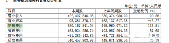 但在此情况下,其半年度的销售费用却强势增加不少,约3.5亿元,同比增加133.51%。而2022年半年度销售费用约1.5亿元,几乎增加了一倍。在销售费用中,员工薪酬占用最多,约2.19亿元;其次是咨询服务费和市场开发费,分别约1.43亿元、1.06亿元。