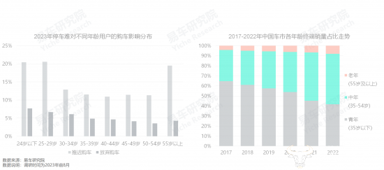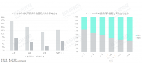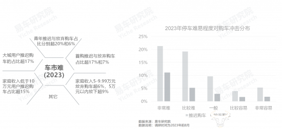 2023年,“停车难”更容易冲击首购用户的购车行为,推迟与放弃的占比分别超过17%和7%