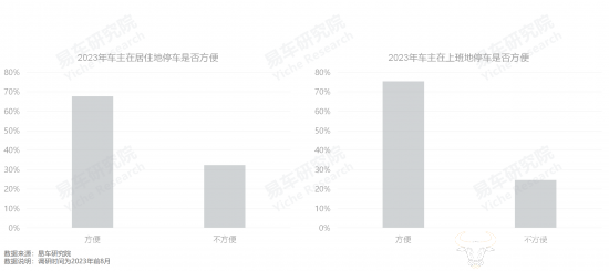 2023年,在居住地,32.28%的中国车主认为停车不方便,年平均停车费用900元,24.48%的车主购买了固定停车位,单个停车位的平均费用高达10.79万元。在上班地,24.68%认为停车不方便,年均停车费用634元;