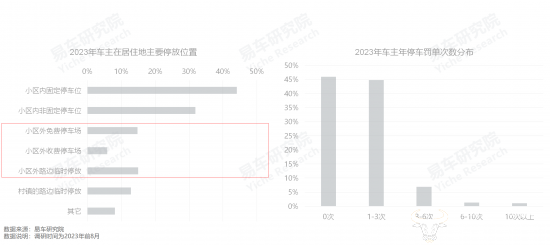 2023年,在城市居住地有35.63%车主停在小区外,因停车不当,年均54.05%车主被贴罚单,每人罚款216元