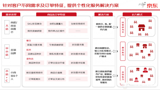 对于连锁品牌为代表的中小店,达达快送结合商圈驻店、骑士小队等混合运力模式优势,匹配餐饮、医药、便利店等不同行业商户需求。