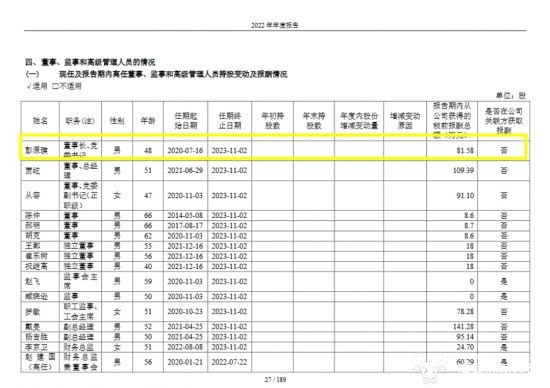 此外,2022年杨吉胜薪酬为98.15万元,贾屹薪酬为109.39万元,戴旻薪酬为141.28万云。也就是说除了前任董事长陈有权以外,彭原璞的薪酬比三位副总经理要低。