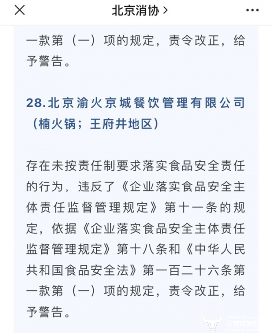 但值得注意的是,在近期,楠火锅品牌旗下一门店因为食品安全问题被通报,原因是存在未按责任制要求落实食品安全责任的行为,违反了相关规定,被责令改正和给予警告。