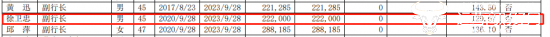 而在薪酬方面,徐卫忠2022年报告期内从公司获得的税前报酬总额为129.67万。相比于同为副行长的邱萍和黄迅来说,徐卫忠的薪酬明显少一些。副行长邱萍年度薪酬136,10万元,黄迅年度薪酬143,50万元。