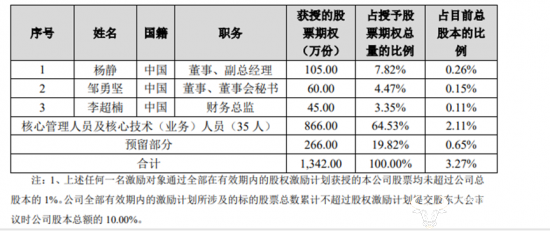 值得注意的是,在公司发布的2023年股票期权激励计划股票期权首次授予结果公告显示,杨静获授公司股票期权105万份,占授予股票期权总量的比例为7.82%,是所有激励对象当中获授最多的那个。