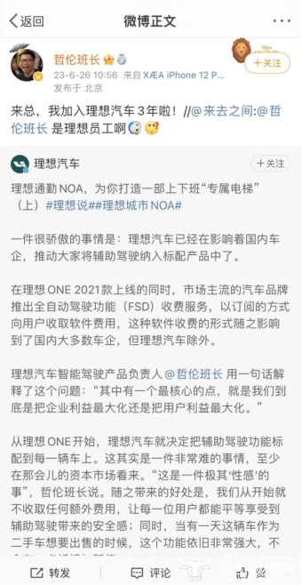 赵哲伦今年在社媒账号上表示,自己已经加入理想汽车三年时间,据此推算他可能是在2021年加入理想汽车。