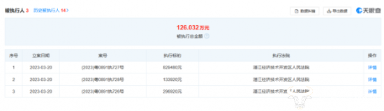 天眼查APP显示,今年3月20日,中通客车股份有限公司被三次立案,成为了被执行人,被执行总额达到126.032万元,具体原因不明,也未见中通客车发布相关回应。