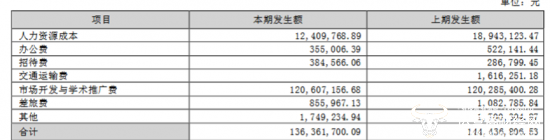 但就在此增收不增利的情况下,未名医药上半年的销售费用却很高。据未名医药半年报显示,公司上半年销售费用达1.36亿元,虽然与上年同期相比减少了5.59%,但占总营收的比例还是居高不下,约65%。其中,市场开发与学术推广费所用金额最多,为1.21亿元,约是其人力资源成本的10倍,令人震惊。