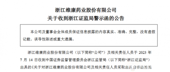 前不久,维康药业收到浙江证监局的警示函,在行业内引发舆论关注。这究竟是什么原因呢?