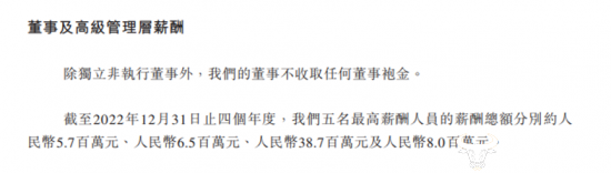据公司招股书显示,截至2022年12月31日的四个年度,公司五名最高薪酬人员的薪酬总额分别约为5.7百万、6.5百万、38.7百万以及8百万元,不知朱江的薪酬是否包含在内。