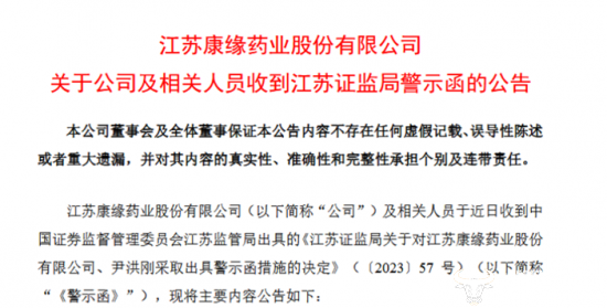 因此,江苏证监局决定对康缘药业及尹洪刚采取出具警示函的行政监管措施,并记入证券期货市场诚信档案。