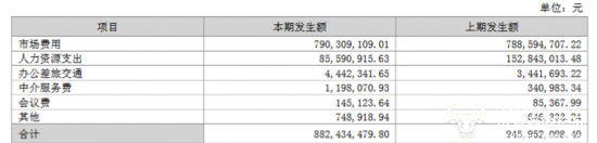在誉衡药业上半年的销售费用中,市场费最高为7.90亿元,比人力资源支出的9倍还多。办公差旅交通费444.23万,平均每月要耗费74万元,这真的合理吗?