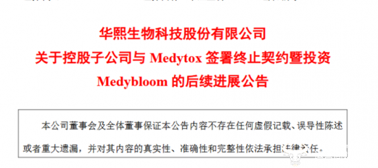 9月5日,华熙生物发布公告称,控股子公司钜朗公司已于9月1日与韩国Medytox、开曼华熙、华熙美得妥Medybloom(开曼华熙与Medytox的合资公司)签署《终止契约》,终止此前的《合资协议》与《独家代理协议》。