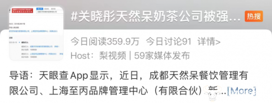 近期,#关晓彤方回应天然呆奶茶公司被强执#的话题登上热搜,一时间,天然呆奶茶再次被推上风口浪尖。