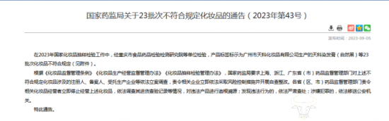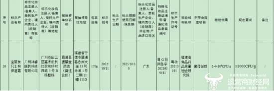 9月5日,国家药品监督管理局在其官方网站发布了关于23批次不符合规定化妆品的通告(2023年第43号),具体内容显示,标示由广州鸿睿医药科技有限公司生产的“宝薇泉凡士林保湿霜”,经福建省食品药品质量检验研究院检验,“菌落总数”不合格。国家规定要求是≤1000CFU/g,但检验结果为6.4x106CFU/g,远超标准。