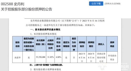 那高进华的钱从哪里来的?据史丹利公告显示,公司预计向公司关联人中赤酒业或其控股子公司采购白酒金额不超过500万元,并且截至披露日,双方已发生关联交易金额达92.84亿元。此外,在8月18日,史丹利发布公告表示,高进华质押了公司股份5555万股,占其持有股份比例的31.85%。
