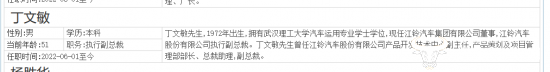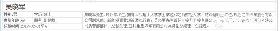 因此,丁文敏实际毕业院校不得而知。不过值得一提的是,江铃汽车另一位副总裁吴晓军披露的学历资料也是武汉理工大学学士学位。实际上他和丁文敏一样,是在合并之前就读完了本科。但是还有一副总裁刘让坡披露的就是武汉汽车工业大学。