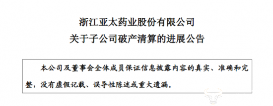 亚太药业在公告中表明自2019年10月起,公司就已不再将上海新高峰、上海新生源及其子公司纳入合并报表的范围了,上海新生源破产清算事项不会对公司的日常生产经营产生重大影响。