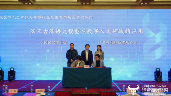活动现场,北京市科委组织了北京市七大行业应用典型场景案例签约仪式,项目双方进行了现场签约,共同推动大模型向更多领域、更深层次发展。据悉,汉王科技股份有限公司与中国国家图书馆就“汉王古汉语大模型在数字人文领域的应用”达成合作,将提供古文识别理解、高精度信息抽取、知识图谱构建、数据可视化等智慧化解决方案,赋能图书古籍数据保护利用和智慧图书馆建设。