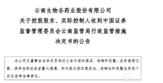 在收到北交所的警示函后不久,生物谷再次于9月21日发布公告称因上述原因受到中国证券监督管理委员会云南监管局出具的警示函等。