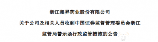 据海昇药业当时发布的相关公告,公司未按规定履行审议程序及信息披露义务,违反了相关规定,因此中国证监会浙江监管局采取了出具警示函的管理措施。