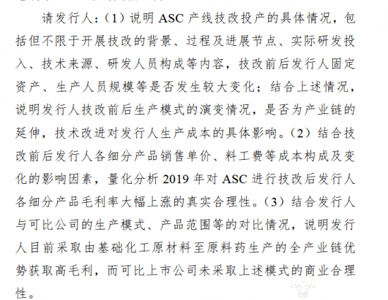 因此,北交所要求海昇药业结合ASC技改前后各细分产品销售单价、料工费等成本构成及变化影响因素,量化分析产品毛利率大幅上涨的真实合理性。
