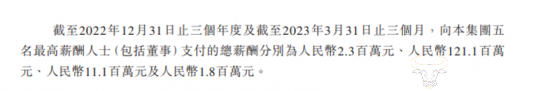 据公司招股书显示,在今年的前三个月,公司向包括董事在内的最高薪酬人士支付的总薪酬为1.8百万元,不知周大鹏的薪酬是否包含在内。