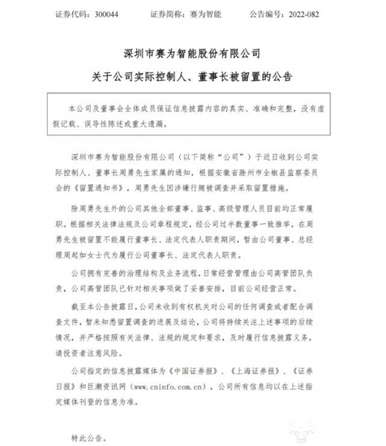 在2022年9月,赛为智能的前任董事长周勇还因为涉嫌行贿被调查并采取了留置措施。直到今年的3月20日才被接触留置。没过几天,赛为智能的董事会就受到了周勇的书面辞职报告,但现任的董事长是他女儿,并且周勇辞职后仍然在公司担任董事、战略委员会职务。