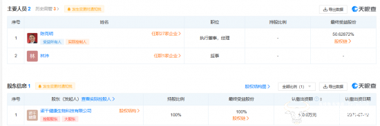 天眼查显示,诺千健康管理成立于2021年7月20日,一家以从事研究和试验发展为主的企业,其股东为诺千健康生物科技有限公司,该公司的实际控股人为克明食品集团和湖南福生源健康咨询合伙企业(有限合伙)。目前,这些公司的法定代表人均为陈克明。