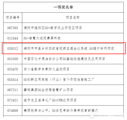 在近日举行的第六届“绽放杯”5G应用征集大赛四川区域赛决赛中,绵阳市“市县乡村四级音视频互通会议系统‘5G随行专网’项目”荣获一等奖。