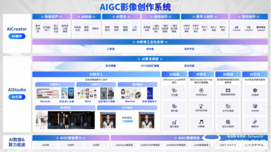联通AIGC平台是联通在线基于联通元宇宙平台和引擎技术能力所推出的多领域内容生产创新应用平台,搭建AI算力,AI算法,AI创作三大规划,开放AI数字人、AI音乐、AI绘画、AI视频、AI空间等AI原子级算法能力,并通过AI调度平台以及工业化生产系统搭建一系列应用能力,极大降低了元宇宙技术的定价门槛,赋能消费级c端用户,实现消费元宇宙。
