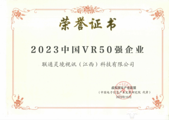 在本次大会的“2023世界VR产业大会VR/AR年度金奖”及“2023世界VR产业大会VR/AR年度创新奖”的评选中,联通在线南昌公司荣获“中国VR50强企业”和“VR/AR年度创新奖”。联通在线南昌公司连续三年入选VR50强企业,连续两年获得世界VR产业大会VR/AR年度创新奖。