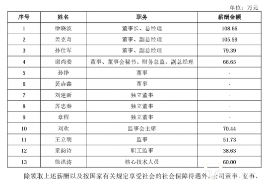 据招股书显示,谢尚委2021年从公司获得的薪酬为66.65万元,比公司其他副总的薪酬都要少,比如姜克奇年度薪酬105.59万元。
