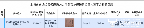 其中,标称生产企业(或供货)为上海奋博电子商务有限公司的型号规格为“Stop X”的Tripollar(初普)射频家用美容仪,经检验“标志和说明”不合格。