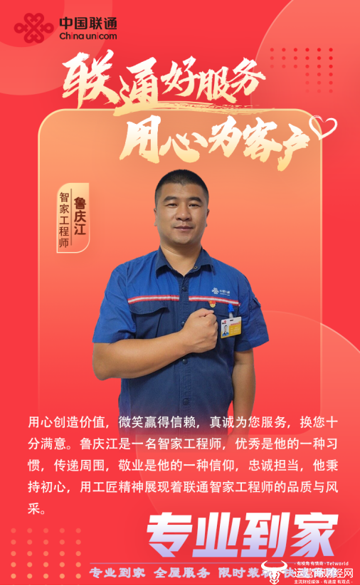 在此,辽宁联通智家工程师鲁庆江郑重承诺:“用心创造价值,微笑赢得信赖。真诚为您服务,换您十分满意。”