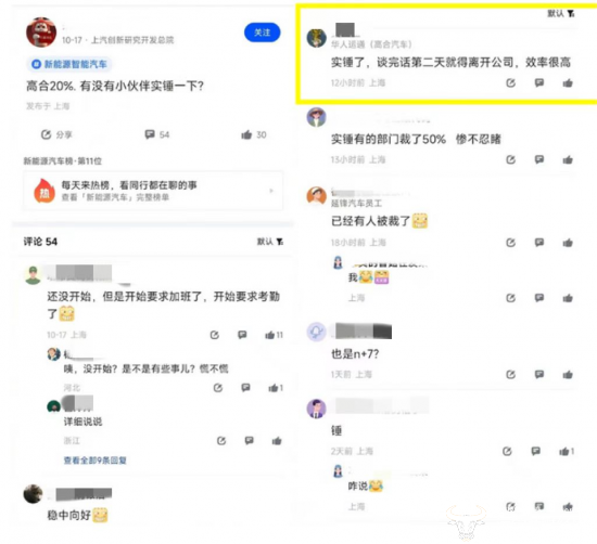 在该帖下面,认证为“华人运通(高合汽车)”的网友回复表示:实锤了,谈完话第二天就得离开公司,效率很高。帖子下面其余评论者大多没有认证信息,所以他们对此事做出的回复的可信度较低。
