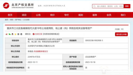 运营商财经网注意到,日前,北京现代重庆工厂第三次挂牌转让。