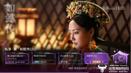 私享家频道汇聚了近10w小时的电影、电视剧、综艺节目,觉得现在播的不好看,按遥控器向右的箭头就可以直接换下一个,多刷几个,总能找到你想看的。