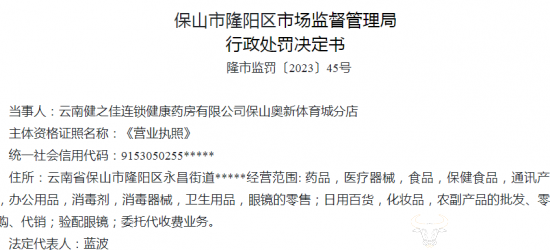 而在更早时,云南健之佳保山奥新体育城分店在应对保山市隆阳区市监局的现场检查被指出问题,但其在市监局对整改情况进行复核检查时,仍存在质量负责人杨超不在岗、处方药冰箱内摆放有阿胶片(食品)、处方区药品与非药品混放等问题,未按药品经营质量管理规范经营药品。因此,被保山市隆阳区市监局在3月16日罚款了1万元等。