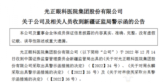 虽然光正眼科在当时表明上述监管措施不会影响公司的生产经营管理活动,但仍一度引发外界报道。