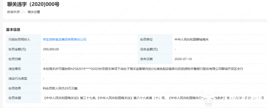 值得注意的是,乖宝宠物曾在2020年受到了聊城海关的行政处罚。原因是未经海关许可擅自将尚处于海关监管期内的2台减免税设备膨化机抵押给齐鲁银行股份有限公司聊城开发区支行,被处以罚款29万元。