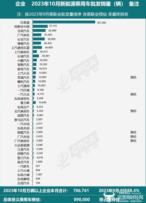 然而在新能源乘用车领域,吉利汽车却甩开奇瑞一大截。据乘联会发布的2023年10月新能源乘用车批发销量数据显示,吉利汽车以62086辆排在榜单第3位,而奇瑞汽车以14000辆排在第14位。虽然乘联会在奇瑞汽车后边标注预估,不过这组数据还是说明,尽管奇瑞汽车在10月总销量中成绩不错,但是在新能源乘用车上,销量表现较为疲软。