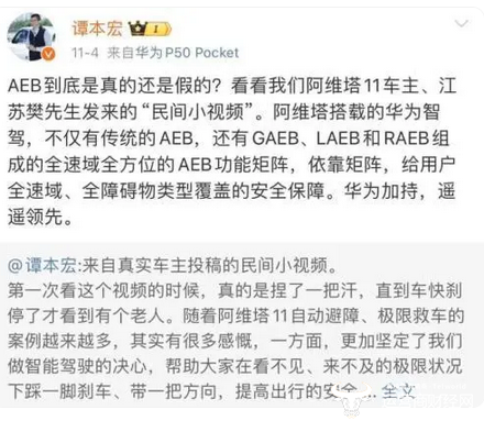 随着余承东和何小鹏双方争论步步升级,诸如哪吒汽车CEO张勇、腾势销售事业部总经理赵长江纷纷下场介绍自家AEB发展水平,还有如阿维塔董事长谭本宏站队华为,称:华为加持,遥遥领先。