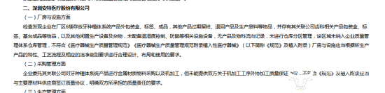 在采购管理方面,安特医疗委托其关联公司对牙种植体系统产品进行金属材质物料采购以及机加工,但未能提供双方关于机加工工序外协加工质量保证协议。