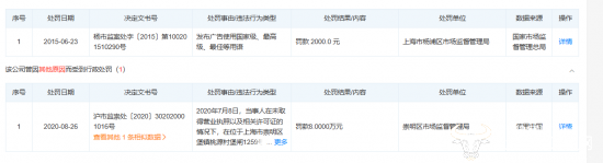 除此之外,在更早之前,公司还曾因违反广告内容管理规定,发布了广告使用国家级、最高级、最 佳等用语,被上海市杨浦区市场监督管理局罚款2000元。