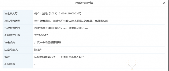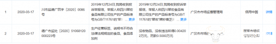 第一次是在2020年3月,被广汉市市场监督管理局罚款5000元。而第二次是在2021年8月,也是被上述监管局罚款5000元,两次累计罚款共1万元,虽金额不多,但也值得钟书红注意。