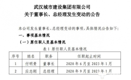 去年年底,武汉城建集团召开大会,宣布应志刚升任武汉城建集团董事长,免去其总经理职务。