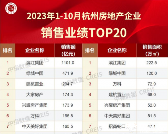 中指研究院数据显示,2023年1-10月杭州房地产企业销售业绩TOP20中,中天美好集团以165.5亿元的销售额位居第7,51.5万平方米的销售面积位居第6,业绩较为平稳,这与董事长华学严也有一定关联。